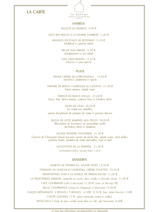 Sur la charmante place Henri IV à Senlis, l’équipe de La bohème vous accueille chaleureusement dans son restaurant.