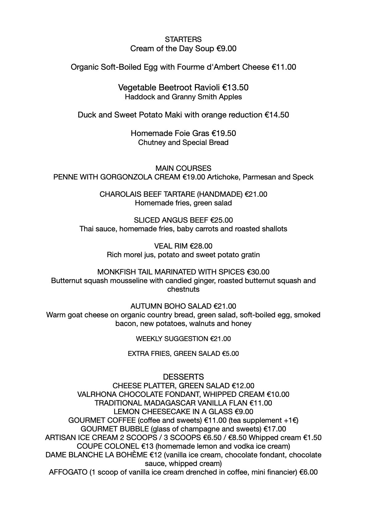 La bohème vous propose une cuisine bistrot faite maison et réalisée avec des produits de qualité.