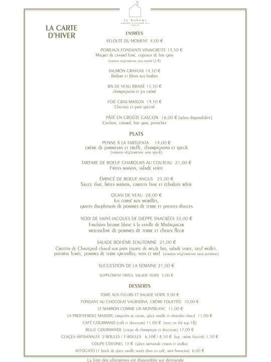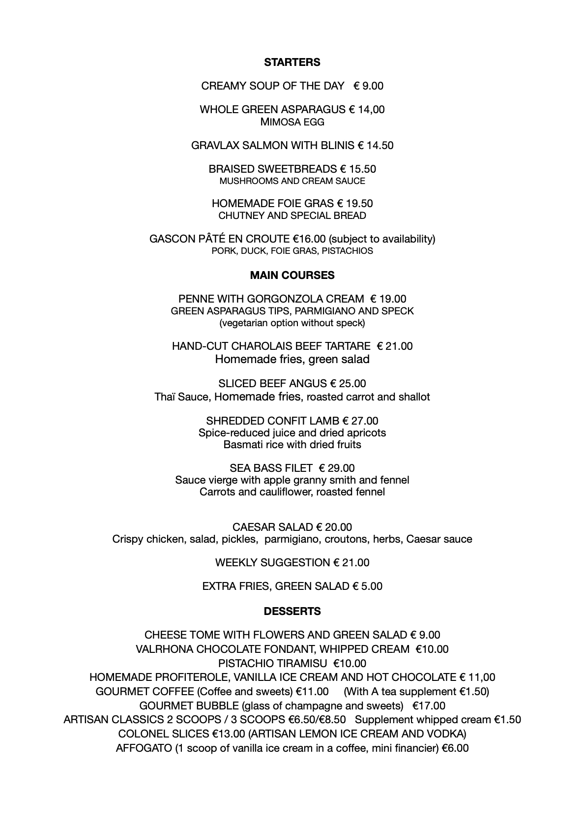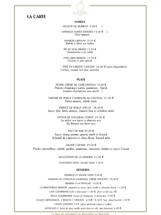La bohème vous propose une cuisine bistrot faite maison et réalisée avec des produits frais.